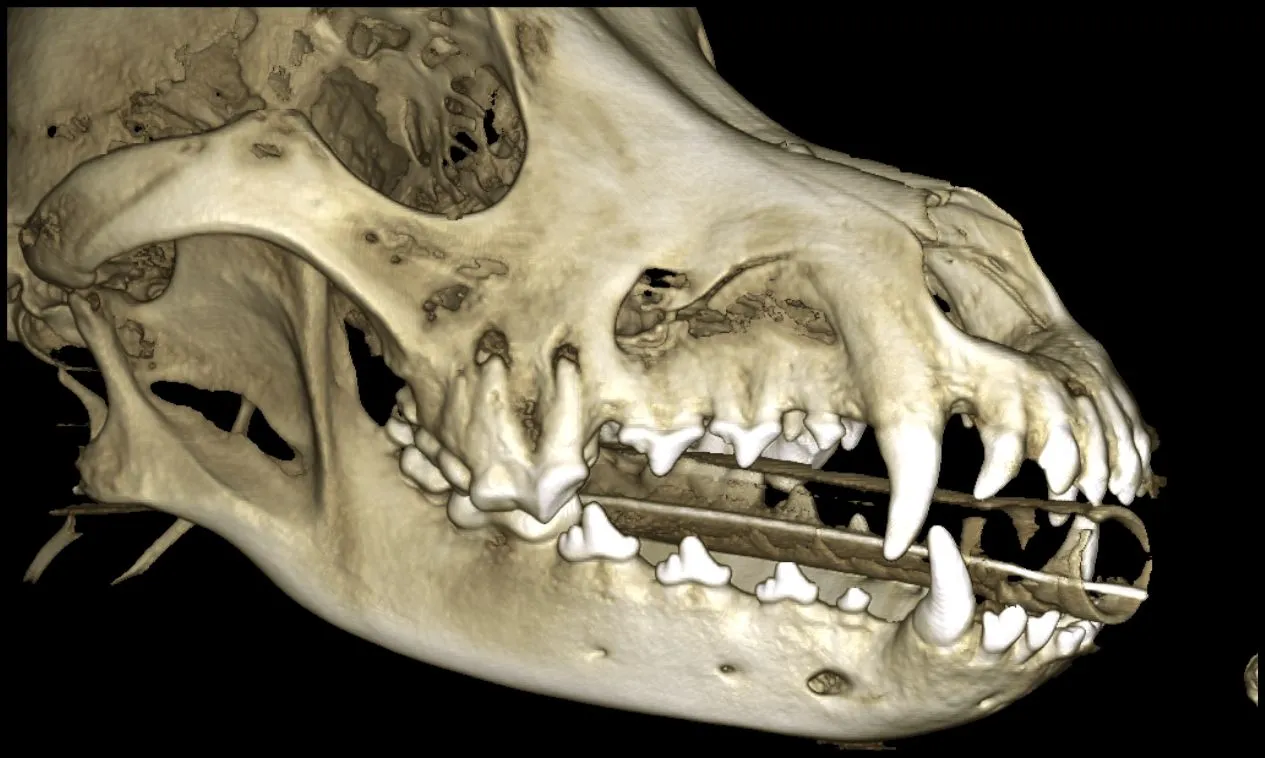 For the last 20+ years, two dimensional dental radiographs (dental x-rays) have been the gold standard for visualizing the roots/bone beneath the gingiva. Dental radiographs have proven to be invaluable for diagnosing abscessed teeth, periodontal disease, fractures of the bone, tooth resorption in cats, and the majority of the problems we see in veterinary dentistry. The major limitation of dental radiographs is that they are a two-dimensional (2D) view of a three-dimensional (3D) object. Studies in veterinary medicine have shown that CBCT can be better than dental radiographs for showing many of these disease processes therefore decreasing the possibility of disease being missed. The CBCT is also beneficial because the individual images can be reconstructed into a 3D image of the skull and teeth which allows the dentist to see where the pathology exists in relation to other areas of the head and bones of the skull.